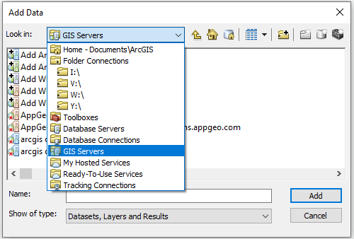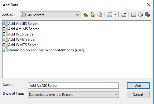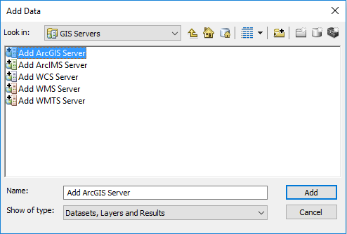 3. Double-click on “Add ArcGIS Server.”
