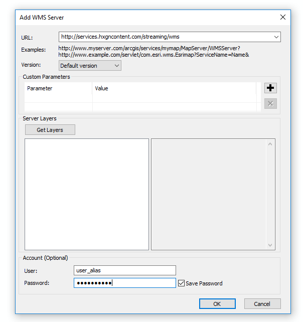 Under the Account (Optional) section, fill in your username and password. Select the “Save Password” box if you want ArcMap to remember your password. Click on “OK.”