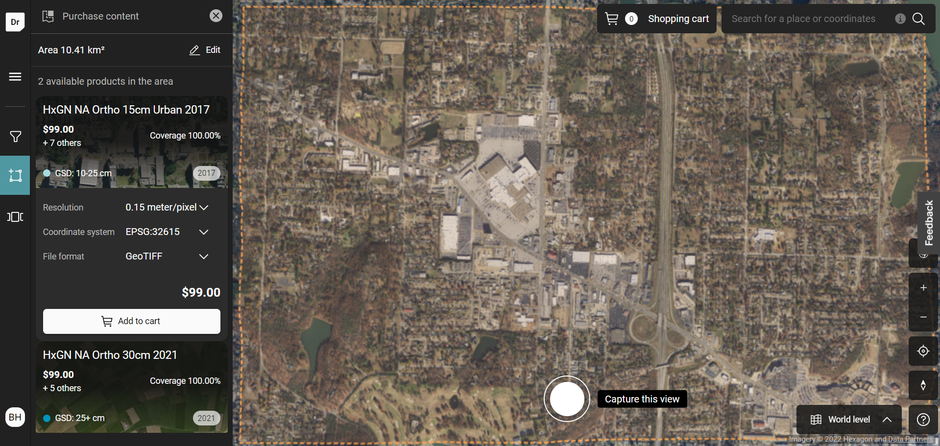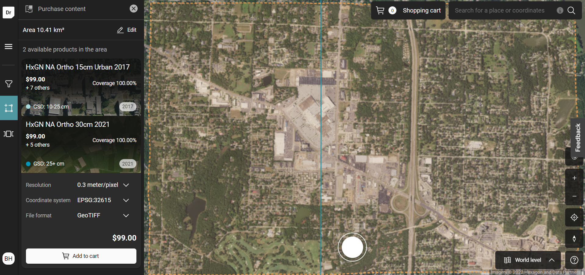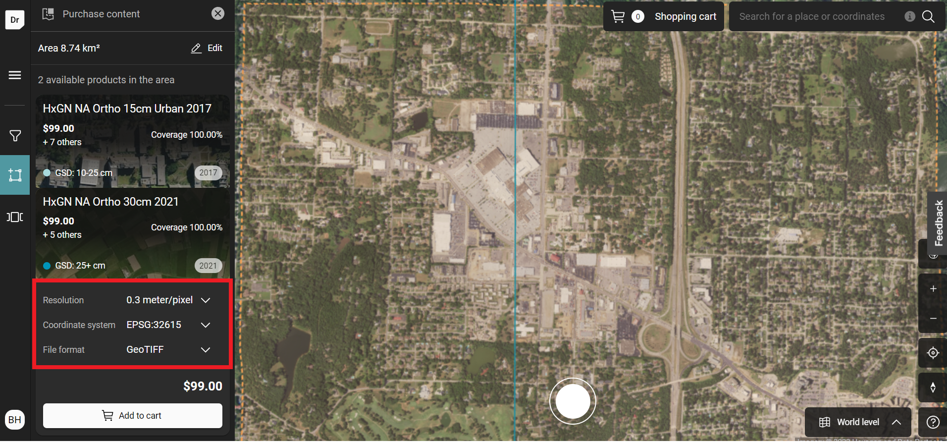 Some area may have multiple layers, these will be provided on the left panel. Each layer has it own purchasing option that can be selected and add to the cart.