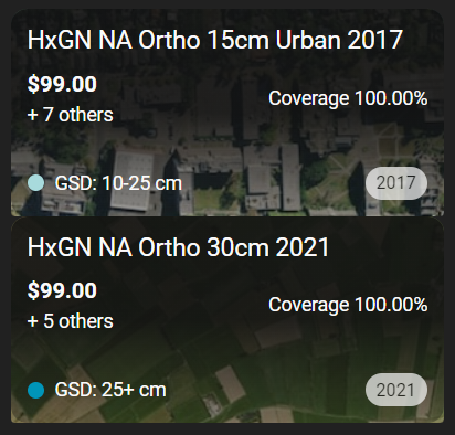 Data Layer | The HxGN Content Program offers many aerial data products, each with their own native resolution or point density. Some 4-band orthoimages are delivered as separate RGB and CIR files. |