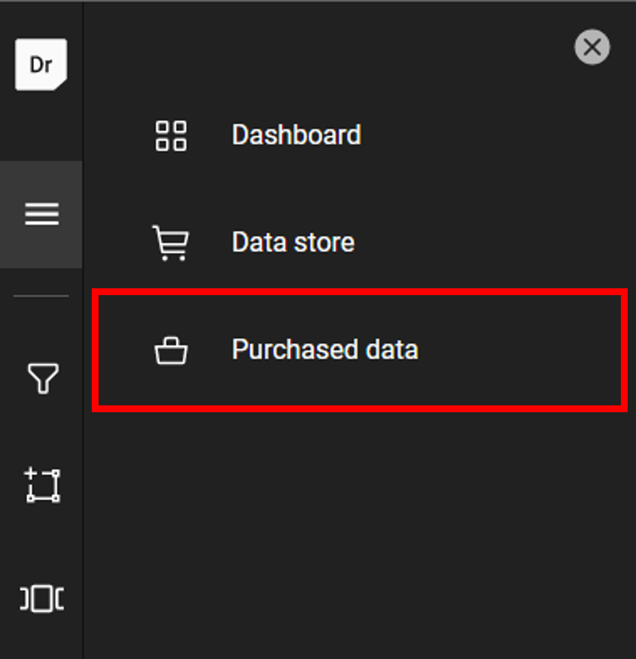 7. Once the purchase is complete, select “Purchased data” from the menu on the left panel.